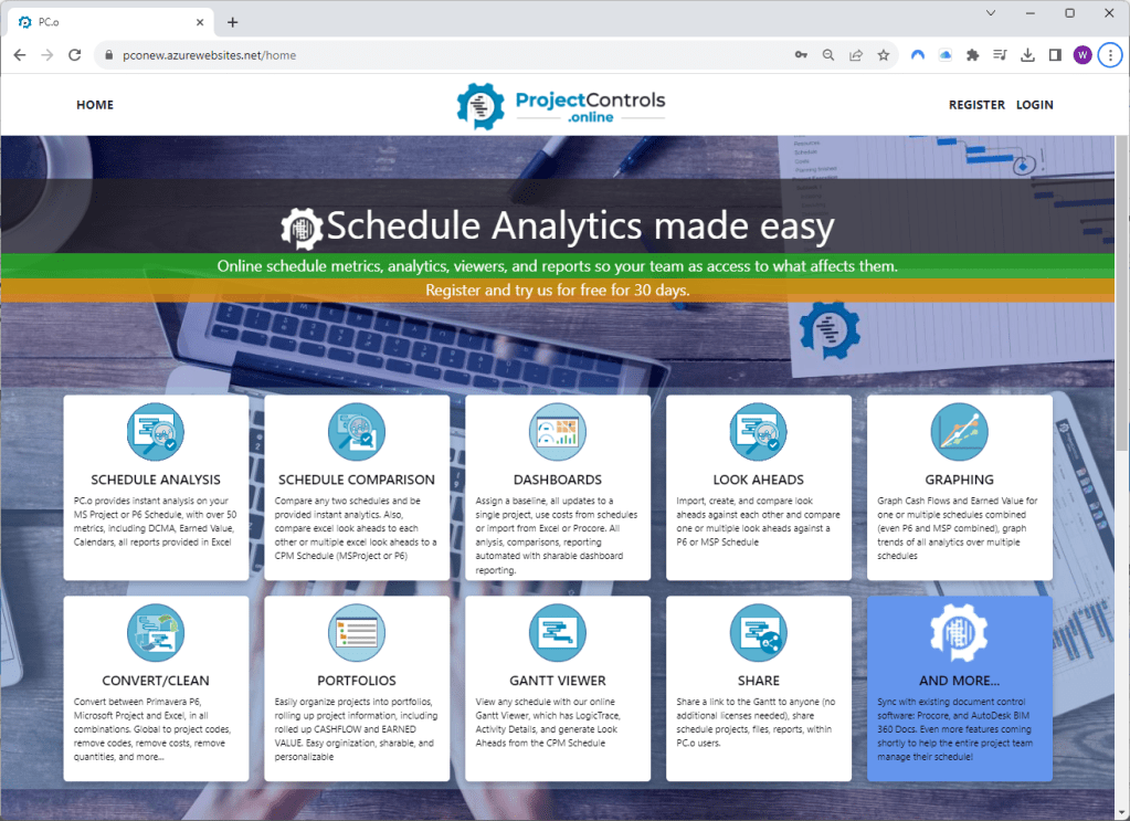Registration is now smoother, with example schedules available upon your first log-in. To ensure a seamless experience, please verify your email account for the 30-day free trial. For any assistance, contact us at Admin@projectcontrols.online.