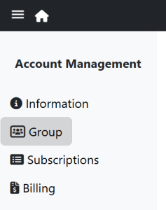Once in the Account section, select “GROUP” on the sidebar to go to the group management section in accounts. This section provides the list of users assigned to licenses, and whether they are admins or just users. Admins can view other user data, and can add/remove users.